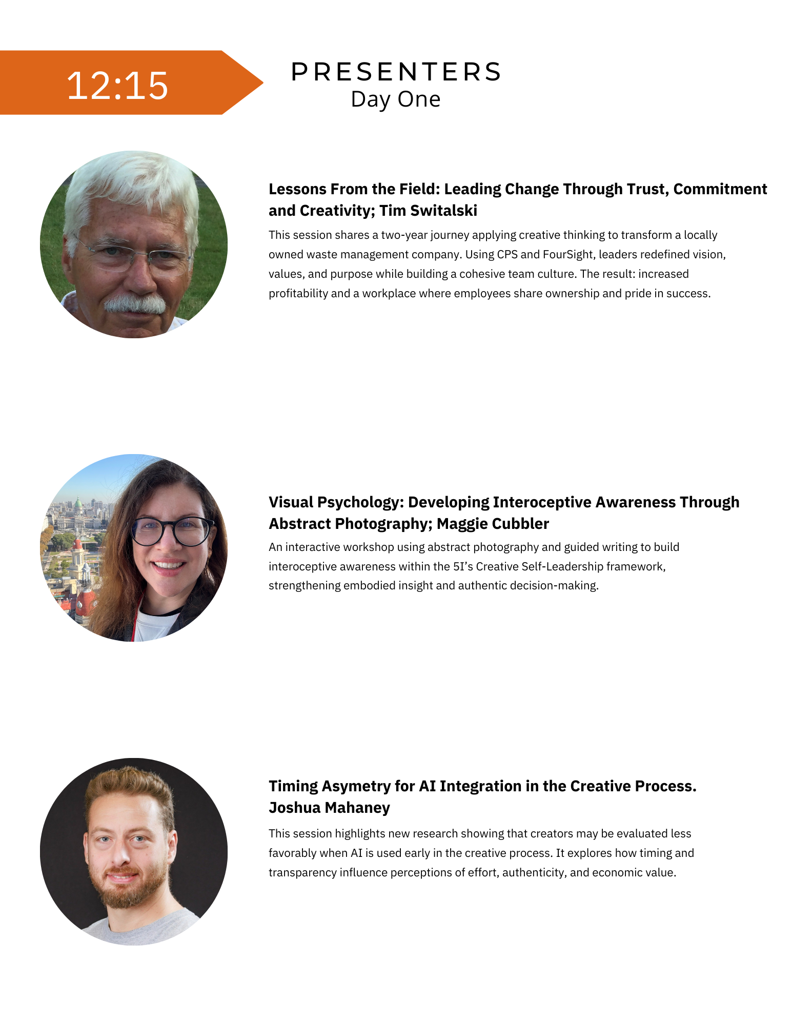 10:15 - 11:30 am (75 min): Keynote - The Creativity Advantage: Professor James Kaufman
